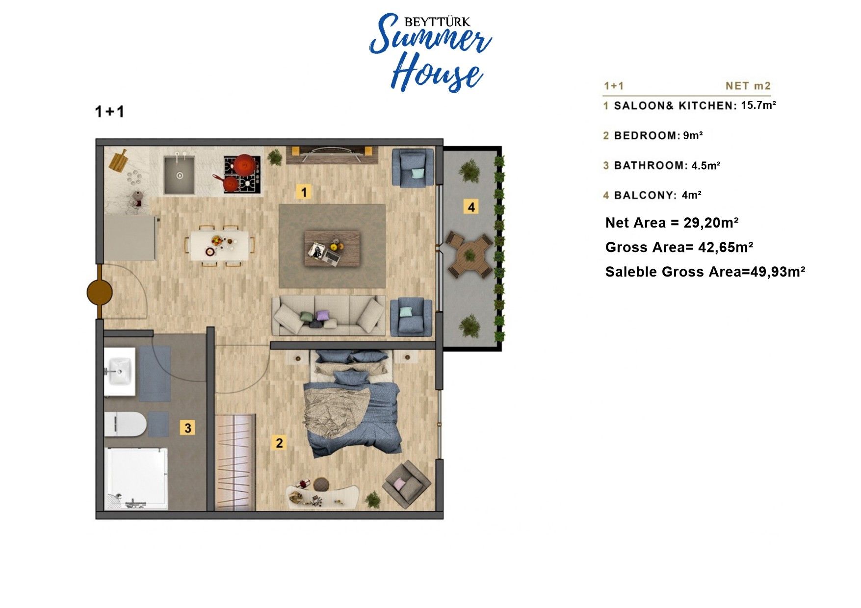 Квартира 1+1 в ЖК среди высоких гор и лесного массива